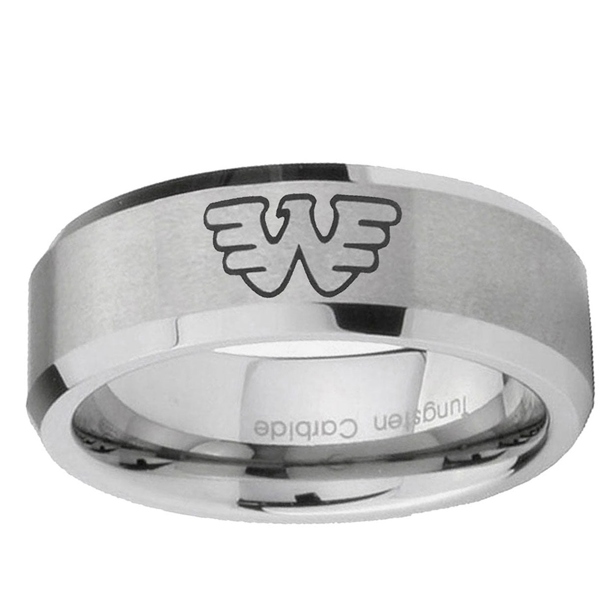 Introducing 6, 8mm Waylon Jennings Beveled Edge Brushed Grey Tungsten Mens Wedding Ring . Offer in both 6mm and 8mm band width brushed grey finished from size 5 to 14