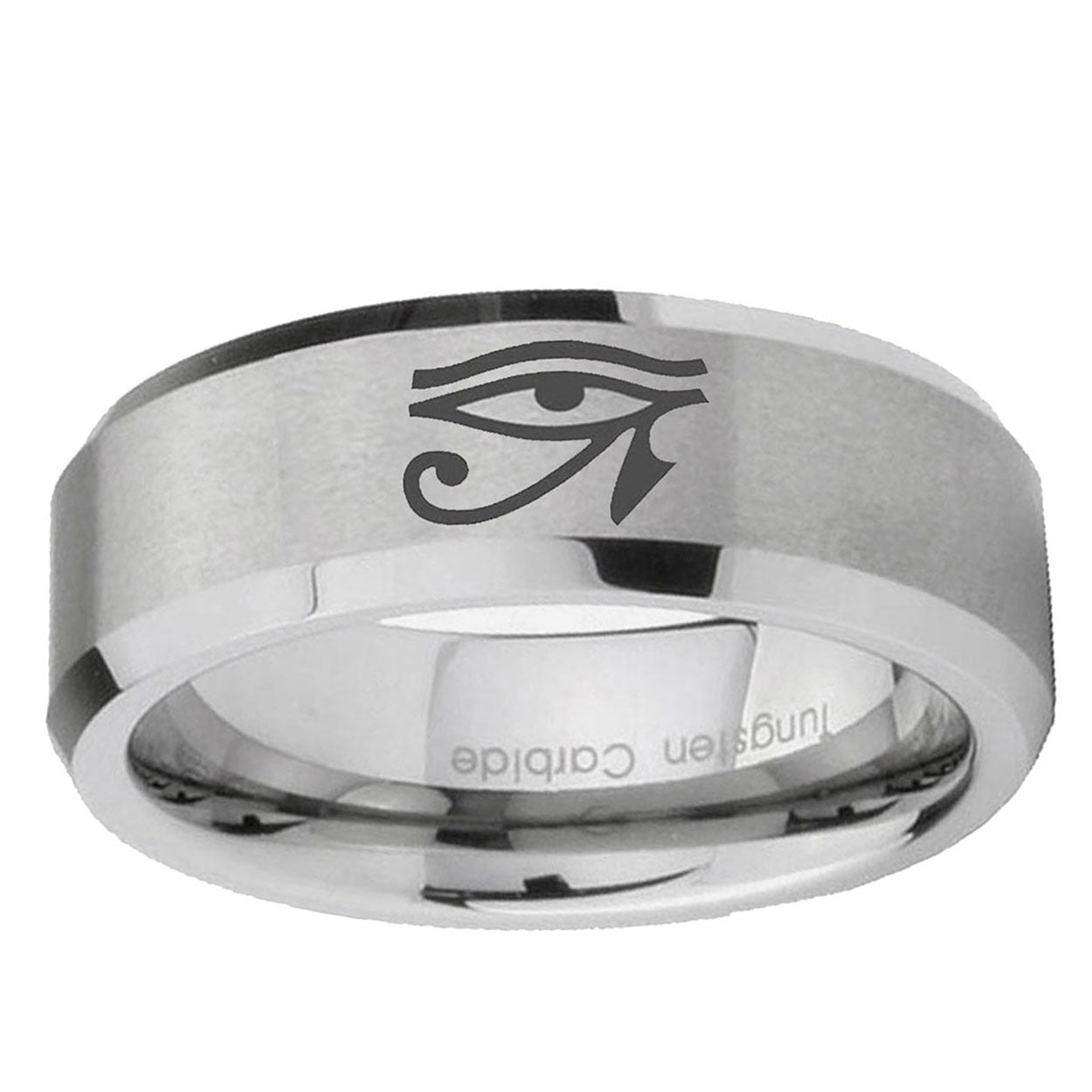 6, 8mm Seeing Eye Beveled Edge Brushed Grey Tungsten Custom Mens Ring