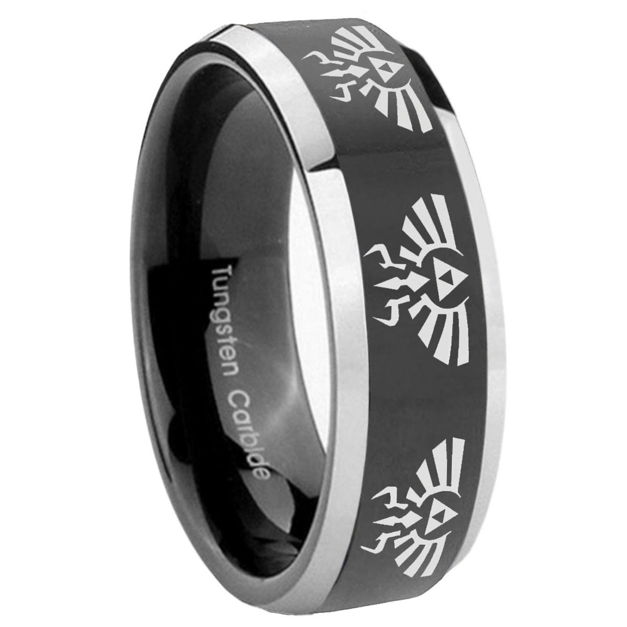 Intruding 5, 8mm Multiple Zelda Skyward Sword Beveled Glossy Black 2 Tone Tungsten Bands Ring . Offer in both 5mm and 8mm band width shiny black pated two tone finished from size 4 to 14