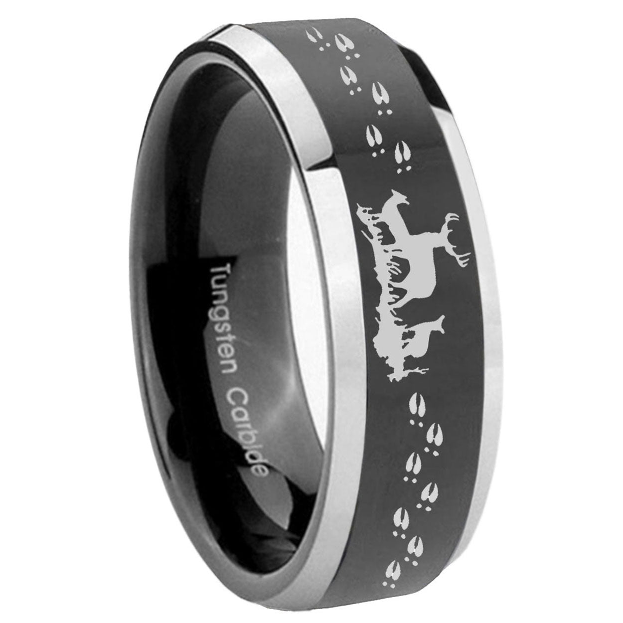 5, 8mm Deer Hunting Beveled Edges Glossy Black 2 Tone Tungsten Men's Ring