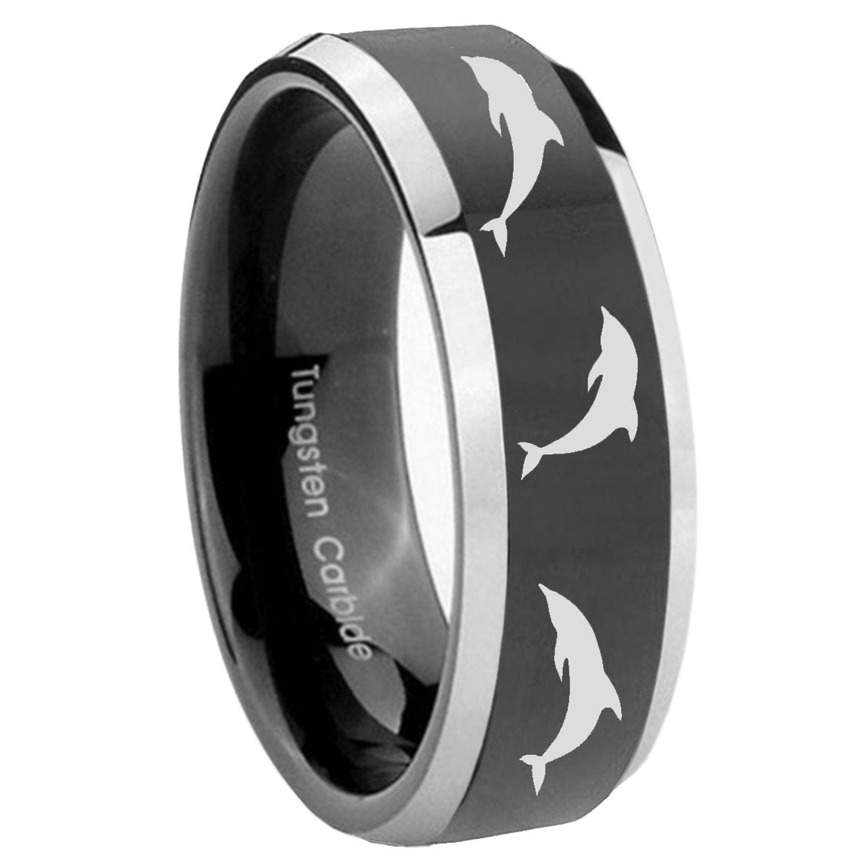 5, 8mm Dolphins Beveled Edges Glossy Black 2 Tone Tungsten Mens Wedding Band