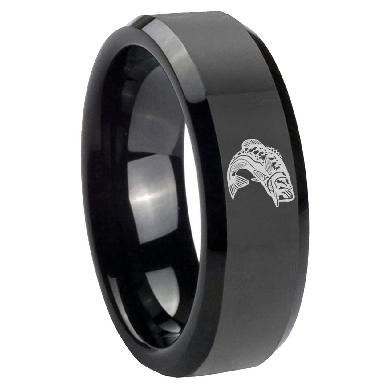 Intruding 5, 8mm Fishing Beveled Edges Black Tungsten Carbide Mens Engagement Band . Offer in both 5mm and 8mm band width polished black plated finished from size 4 to 14