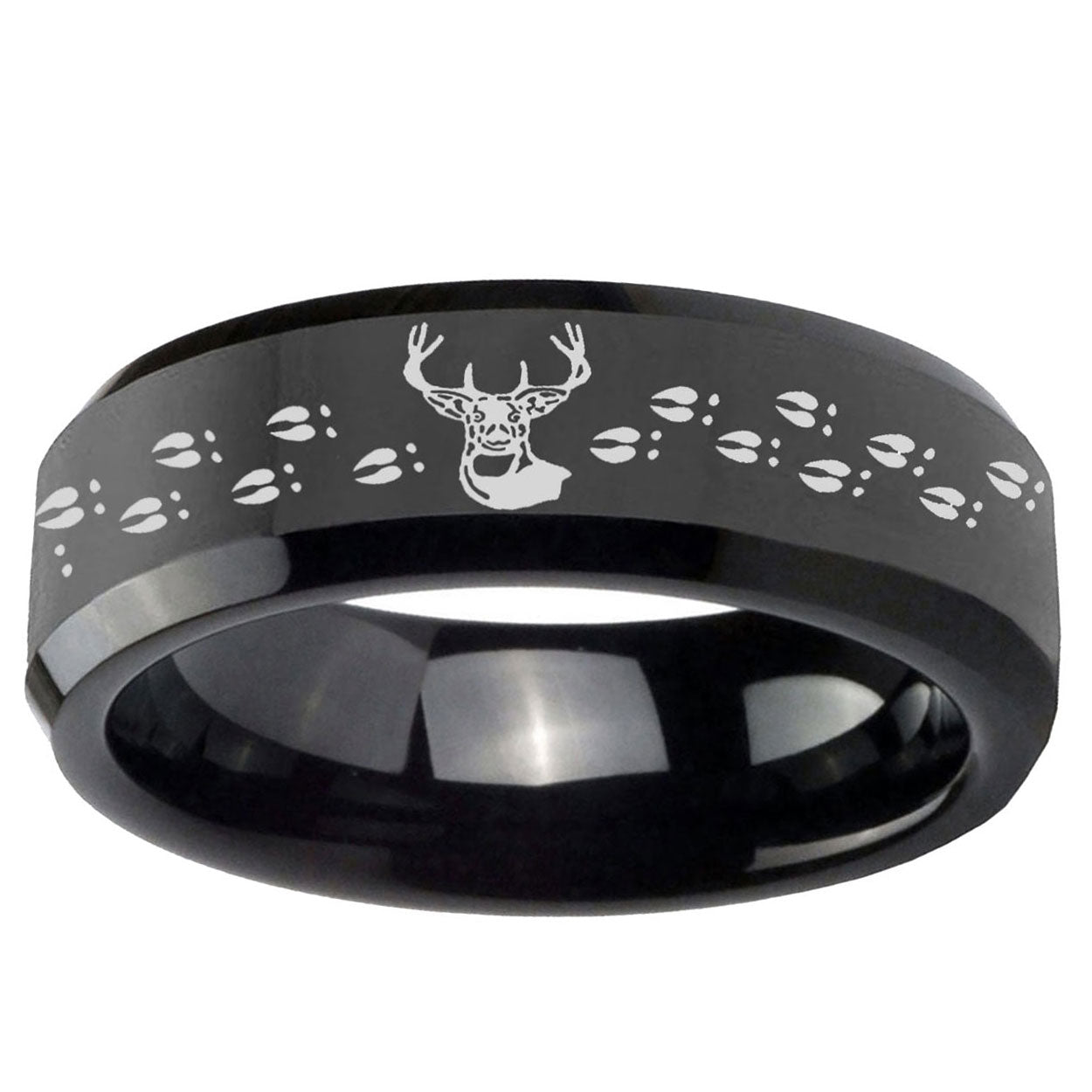 Intruding 5, 8mm Deer Antler Beveled Edges Black Tungsten Carbide Mens Engagement Band . Offer in both 5mm and 8mm band width polished black plated finished from size 4 to 14