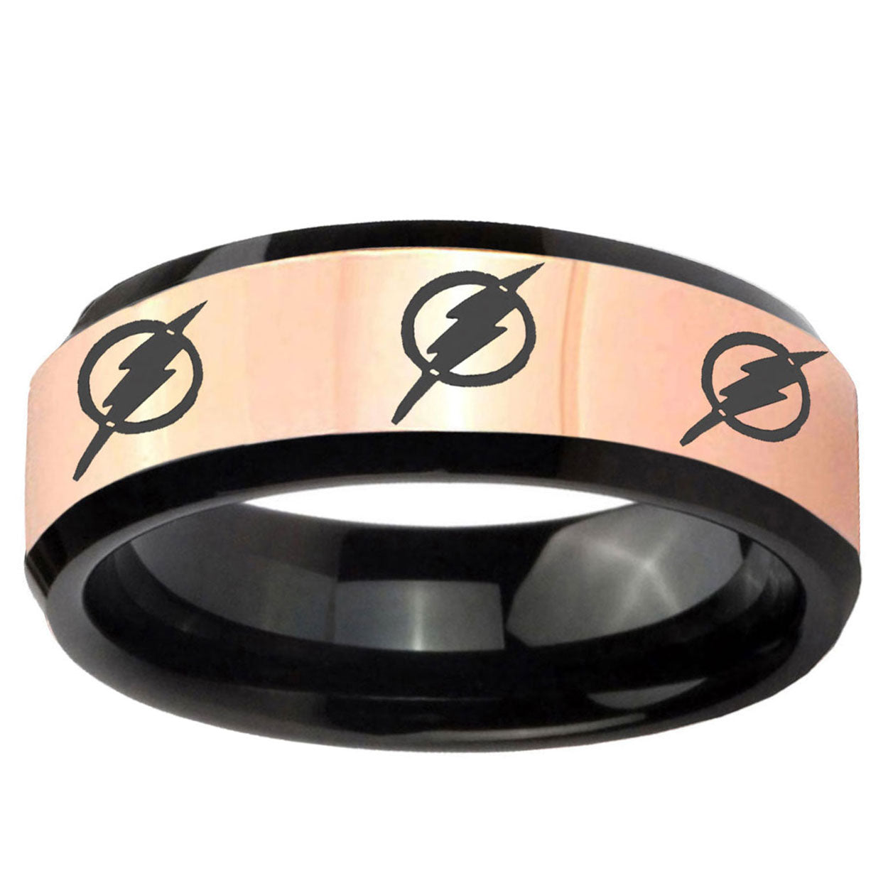 8mm Multiple Flash Rose Gold And Black Beveled Edge Men's Wide Wedding Bands