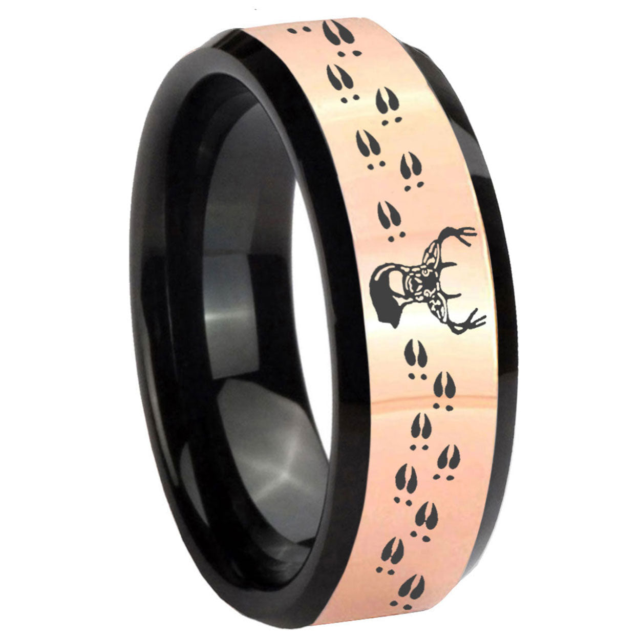 8mm Deer Antler Rose Gold And Black Beveled Edge Tungsten Carbide Men's Wedding Band