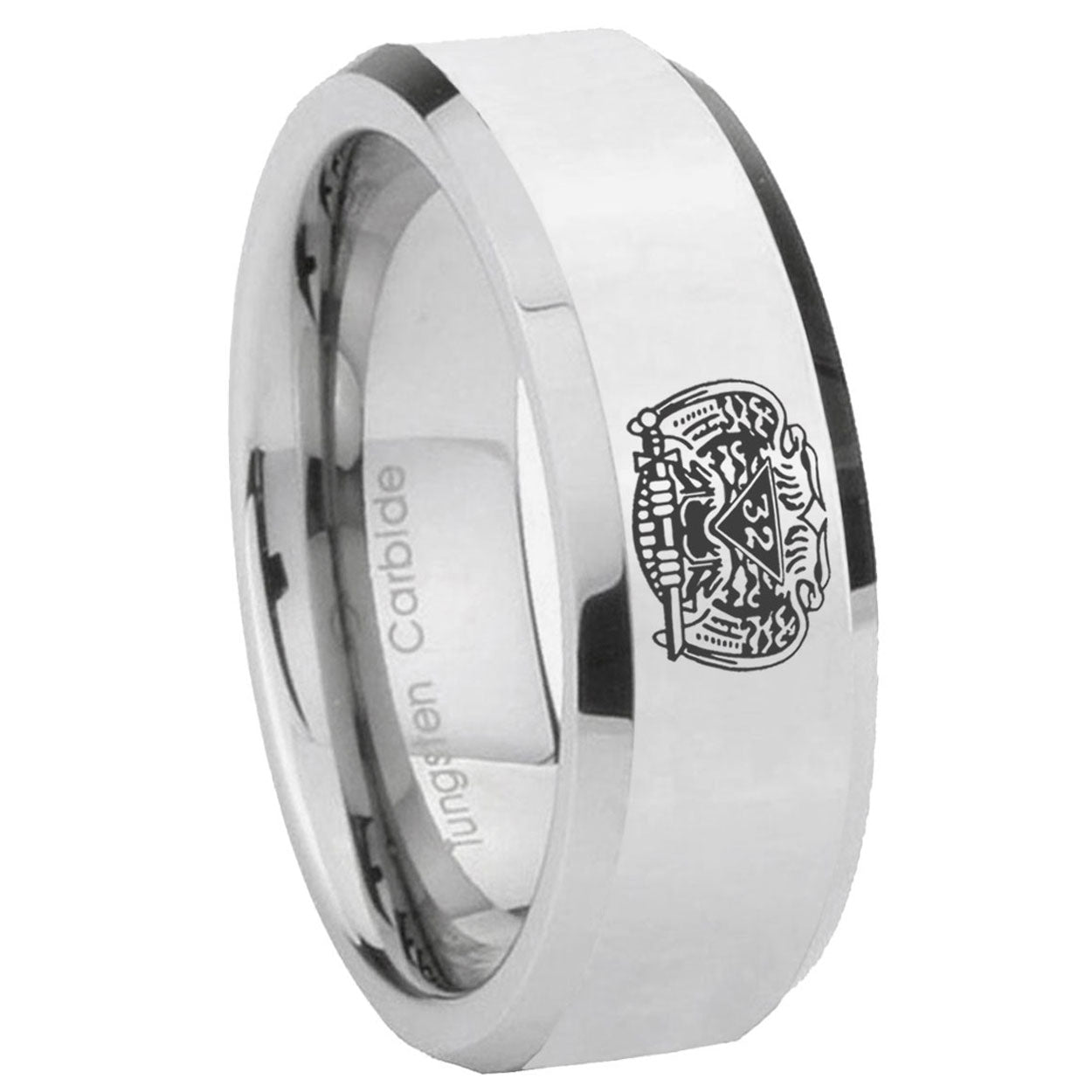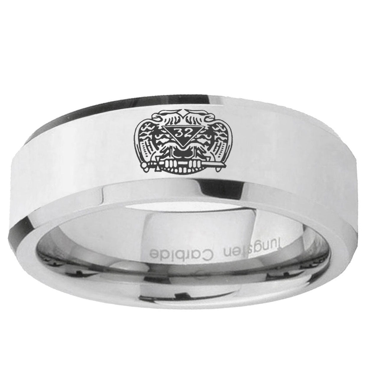 Intruding 5, 8mm Masonic 32 Degree Freemason Beveled Edges Silver Tungsten Carbide Mens Anniversary Ring . Offer in both 5mm and 8mm band width polished silver finished from size 4 to 14