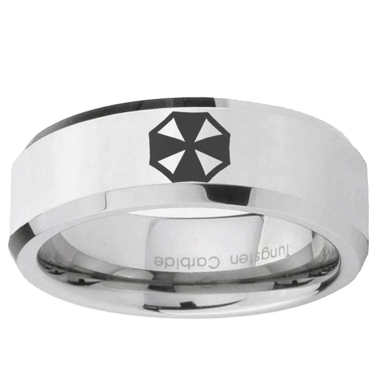 Intruding 5, 8mm Resident Evil Beveled Edges Silver Tungsten Carbide Wedding Band Mens . Offer in both 5mm and 8mm band width polished silver finished from size 4 to 14