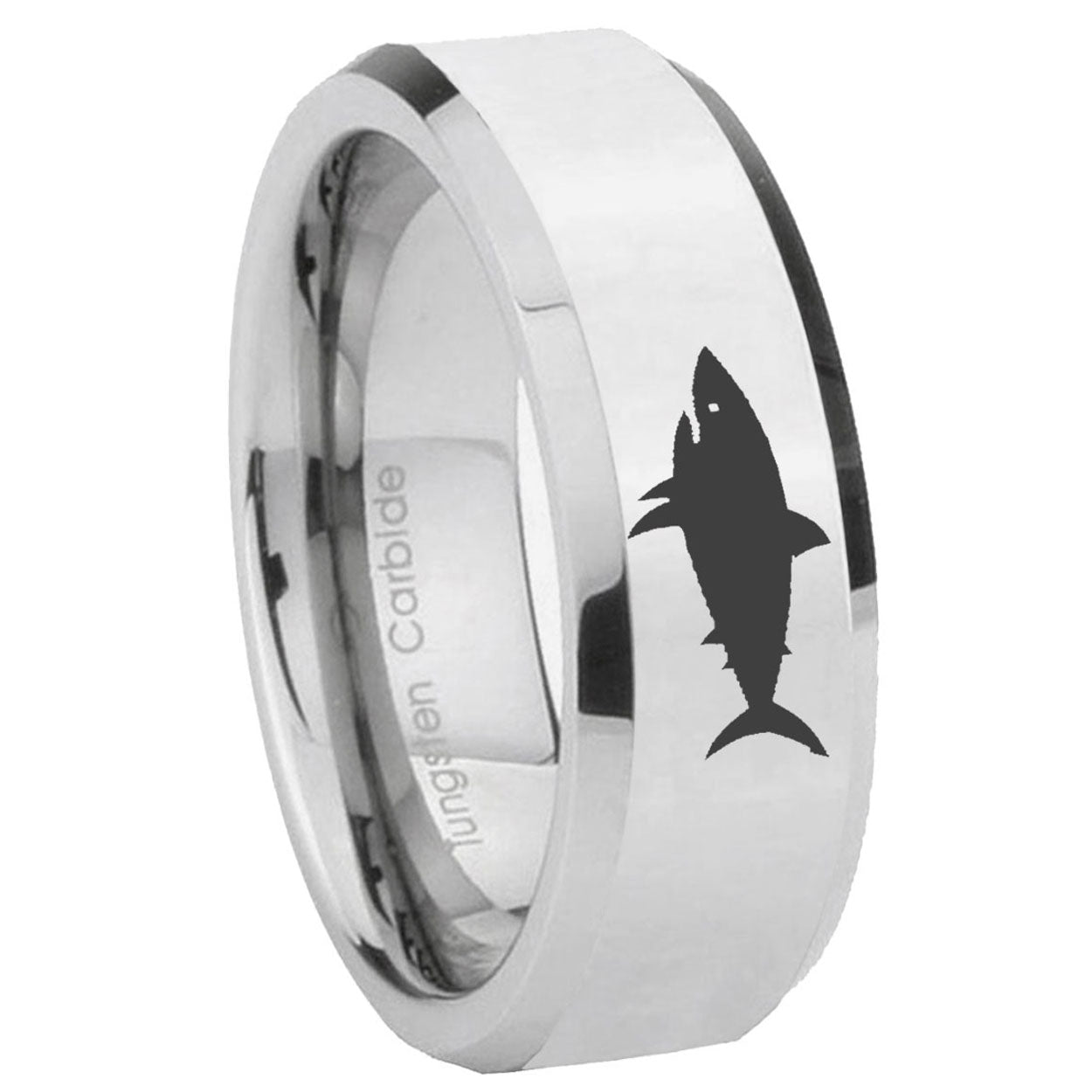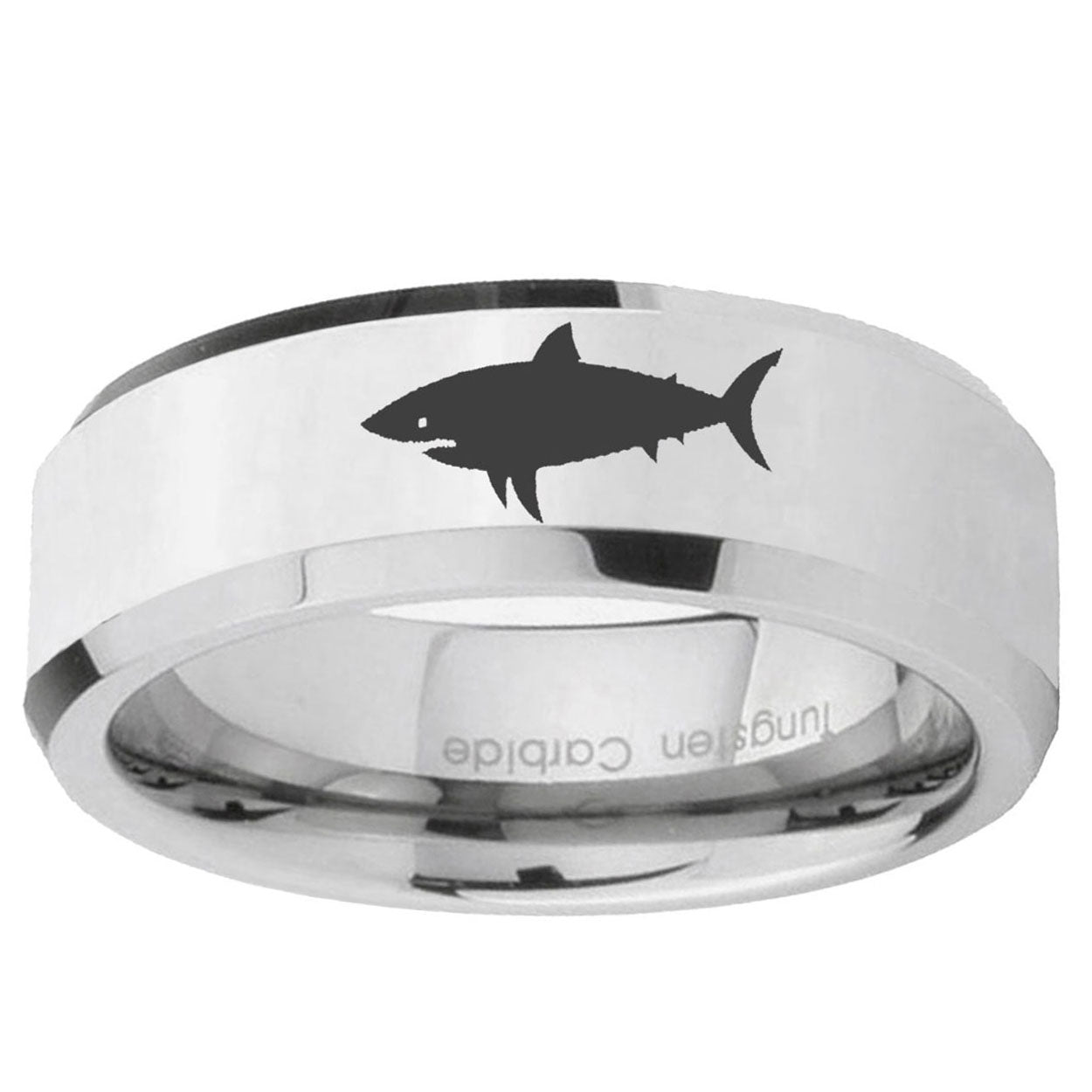 Intruding 5, 8mm Shark Beveled Edges Silver Tungsten Carbide Men's Band Ring . Offer in both 5mm and 8mm band width polished silver finished from size 4 to 14