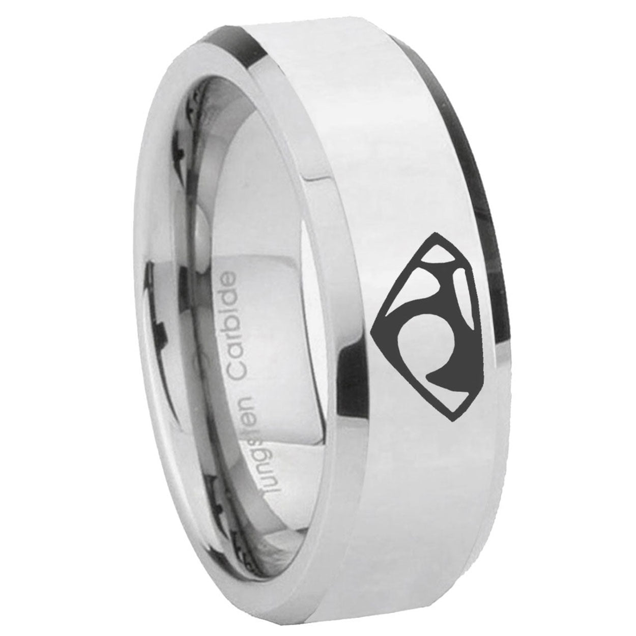 Intruding 5, 8mm House of Van Beveled Edges Silver Tungsten Carbide Bands Ring . Offer in both 5mm and 8mm band width polished silver finished from size 4 to 14