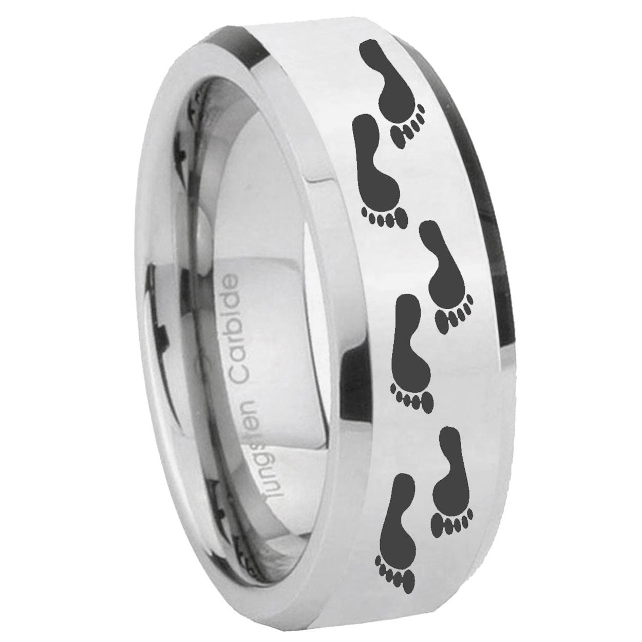 Intruding 5, 8mm Foot Print Beveled Edges Silver Tungsten Carbide Men's Wedding Band . Offer in both 5mm and 8mm band width polished silver finished from size 4 to 14
