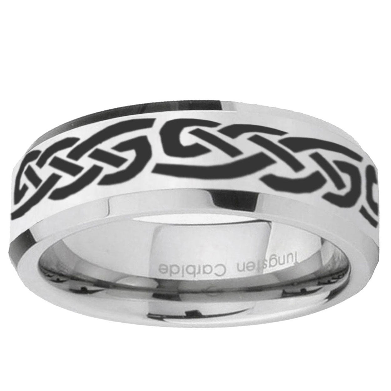 5, 8mm Celtic Knot Infinity Love Beveled Edges Silver Tungsten Wedding Engagement Ring