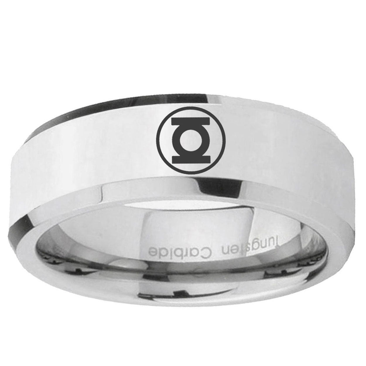 Intruding 5, 8mm Green Lantern Beveled Edge Silver Comfortable Wedding Rings . Offer in both 5mm and 8mm band width polished silver finished from size 4 to 14