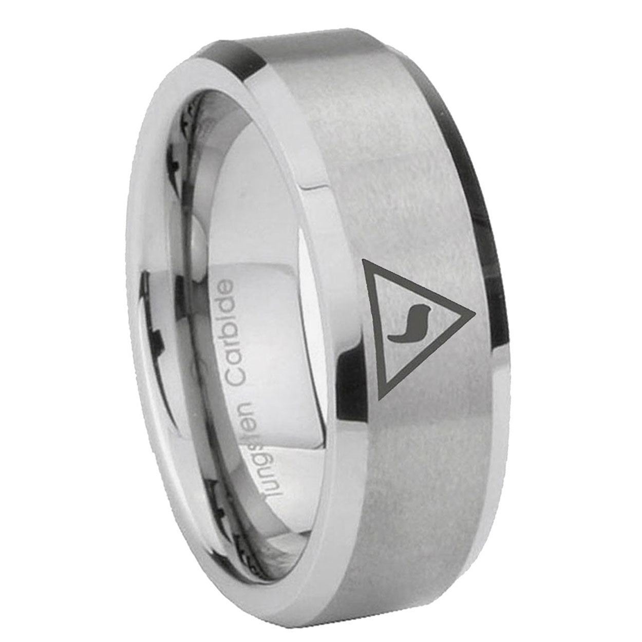 10mm Masonic Yod Beveled Edges Matte Grey Tungsten Carbide Engagement Ring