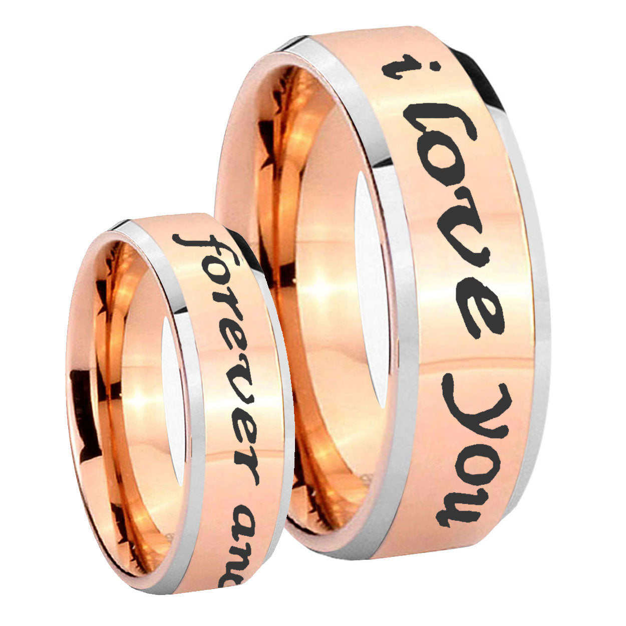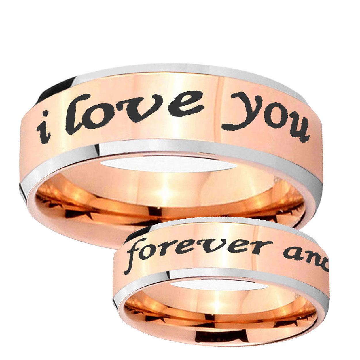 Intruding 5, 8mm I Love You Forever and ever Beveled Rose Gold Tungsten Wedding Band Mens . Offer in both 5mm and 8mm band width rose gold two tone finished from size 4 to 14
