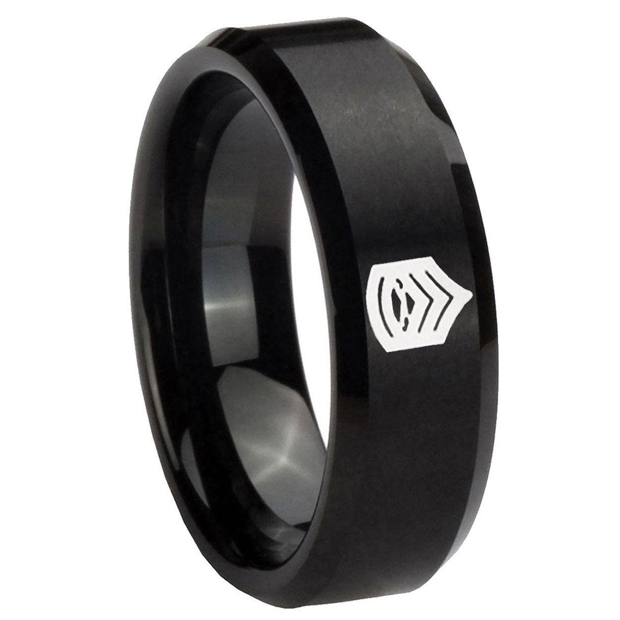 Intruding 5, 8mm Army Sergeant Major Beveled Edges Brush Black Tungsten Mens Promise Ring . Offer in both 5mm and 8mm band width brushed black plated finished from size 4 to 14