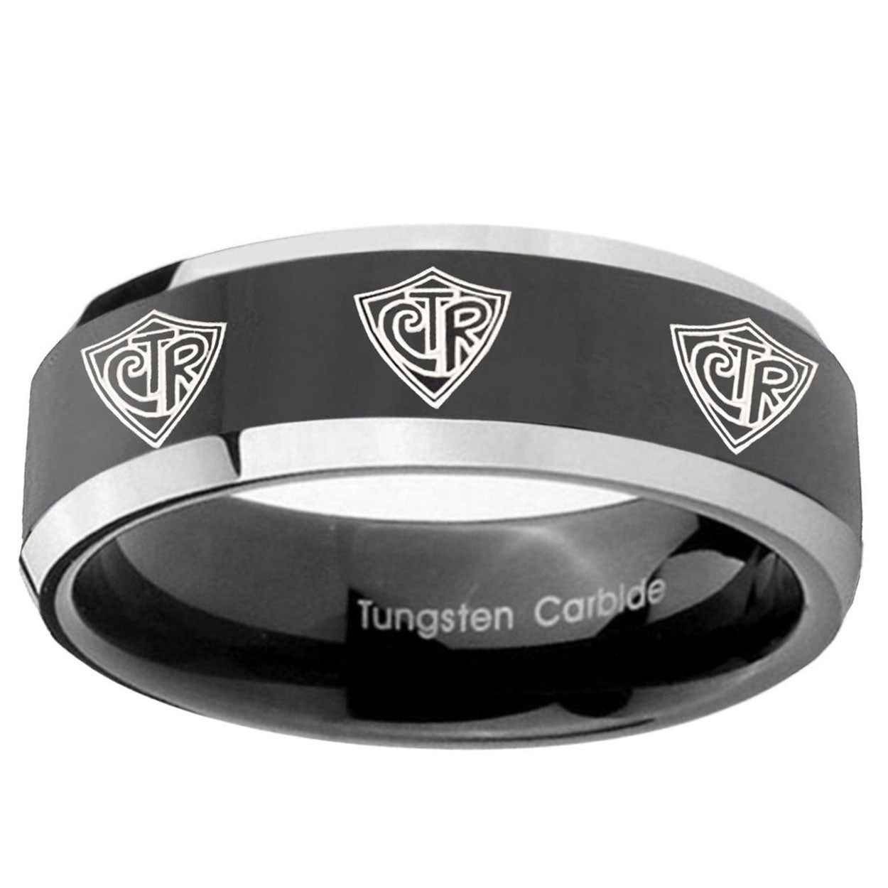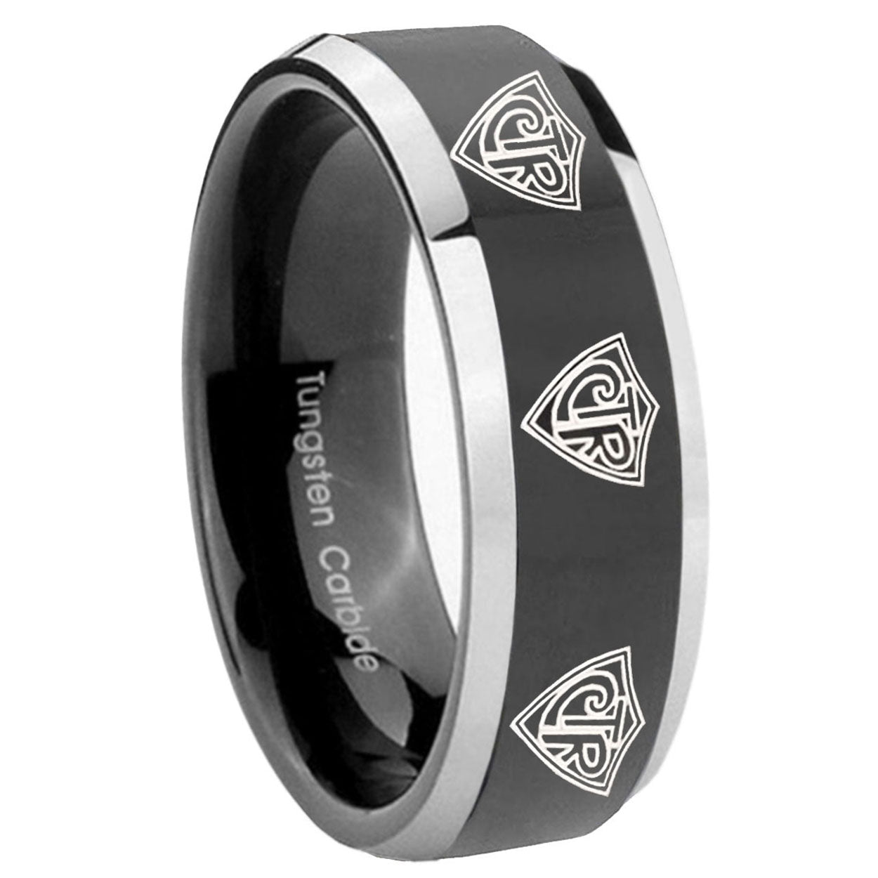 Propose with the 10mm Multiple CTR Beveled Glossy Black 2 Tone Tungsten Mens Engagement Band. This glossy black and 2-tone tungsten ring with Multiple CTR design is ideal for engagements.