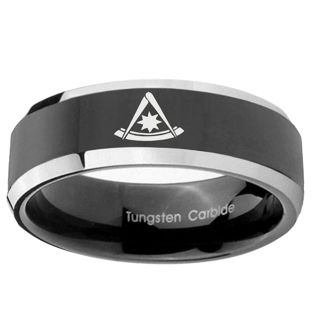 10mm Pester Master Masonic Beveled Glossy Black 2 Tone Tungsten Custom Mens Ring