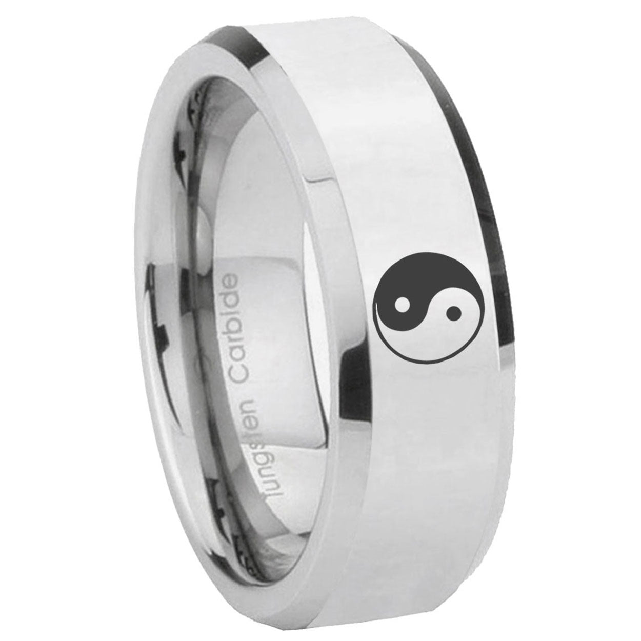 5, 8mm Yin Yang Beveled Edges Silver Tungsten Carbide Mens Engagement Ring