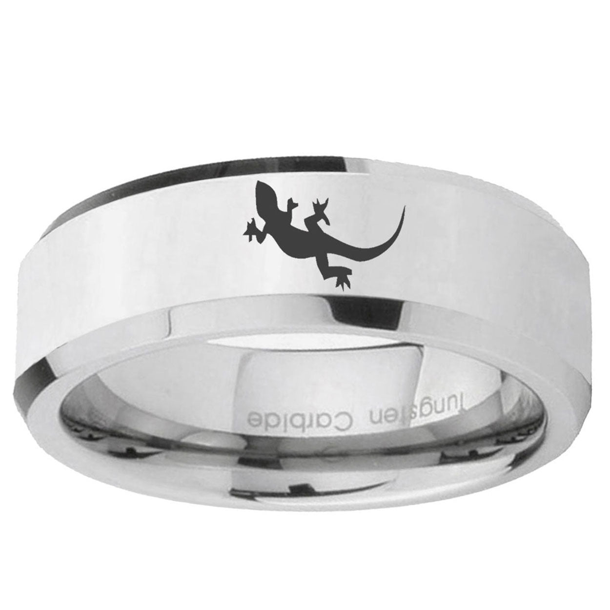 5, 8mm Lizard Beveled Edges Silver Tungsten Carbide Custom Mens Ring
