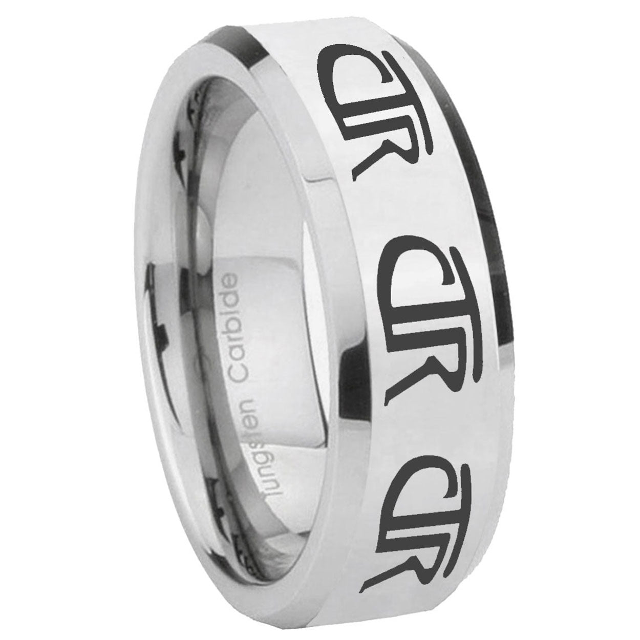 10mm Multiple CTR Beveled Edges Silver Tungsten Carbide Men's Band Ring