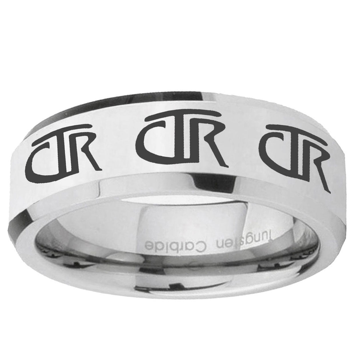 Style the 10mm Multiple CTR Beveled Edges Silver Tungsten Carbide Men's Band Ring. This silver tungsten ring with Multiple CTR design is perfect for men.