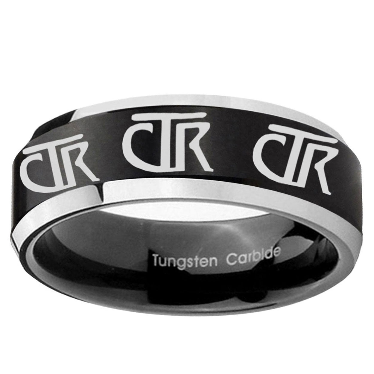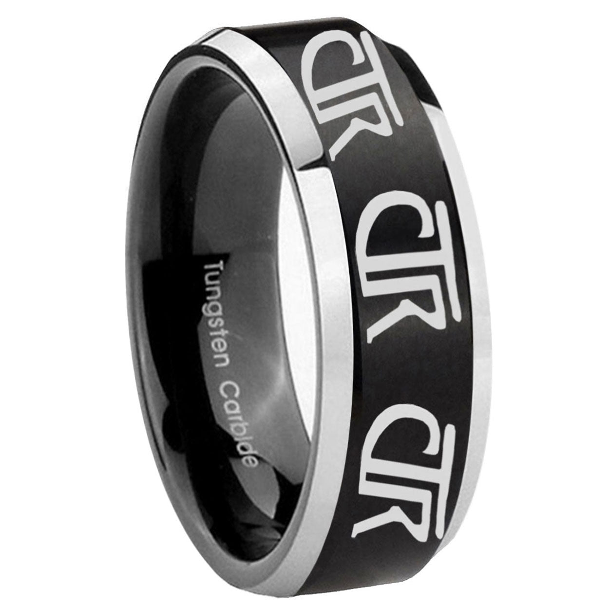 10mm Multiple CTR Beveled Brush Black 2 Tone Tungsten Mens Engagement Ring