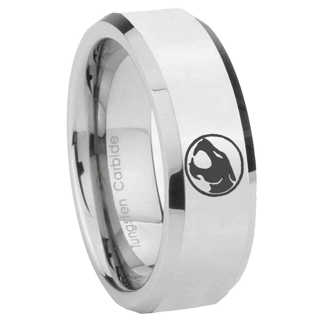 Intruding 5, 8mm Thundercat Beveled Edges Silver Tungsten Carbide Mens Engagement Ring . Offer in both 5mm and 8mm band width polished silver finished from size 4 to 14