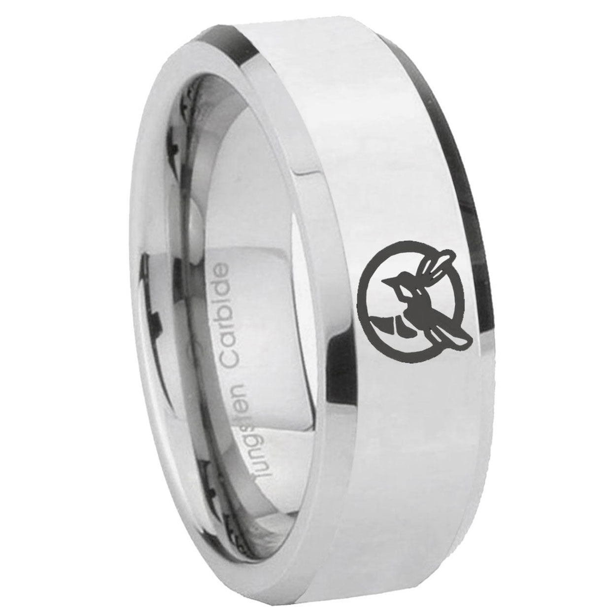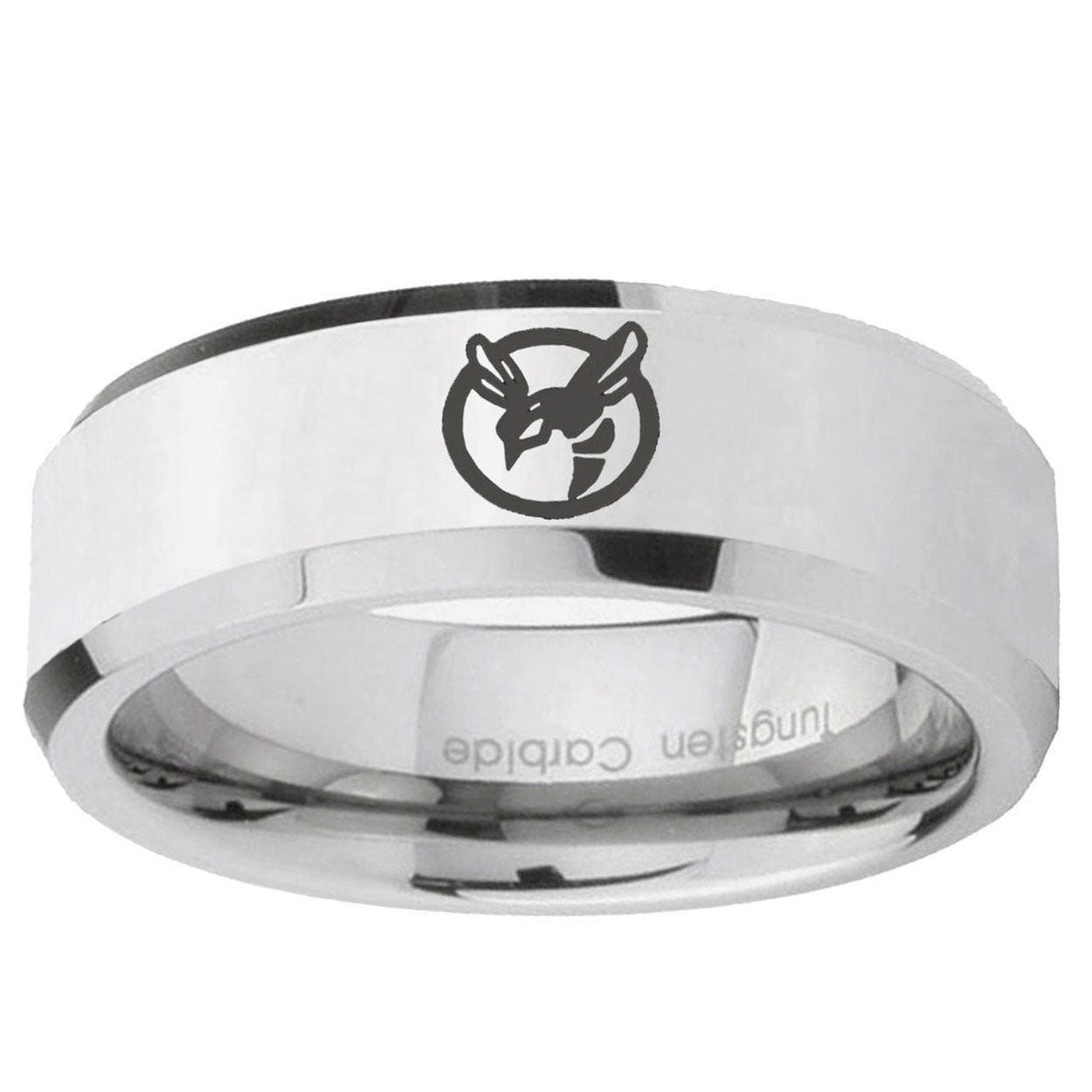 Intruding 5, 8mm Honey Bee Beveled Edges Silver Tungsten Carbide Mens Ring Personalized . Offer in both 5mm and 8mm band width polished silver finished from size 4 to 14