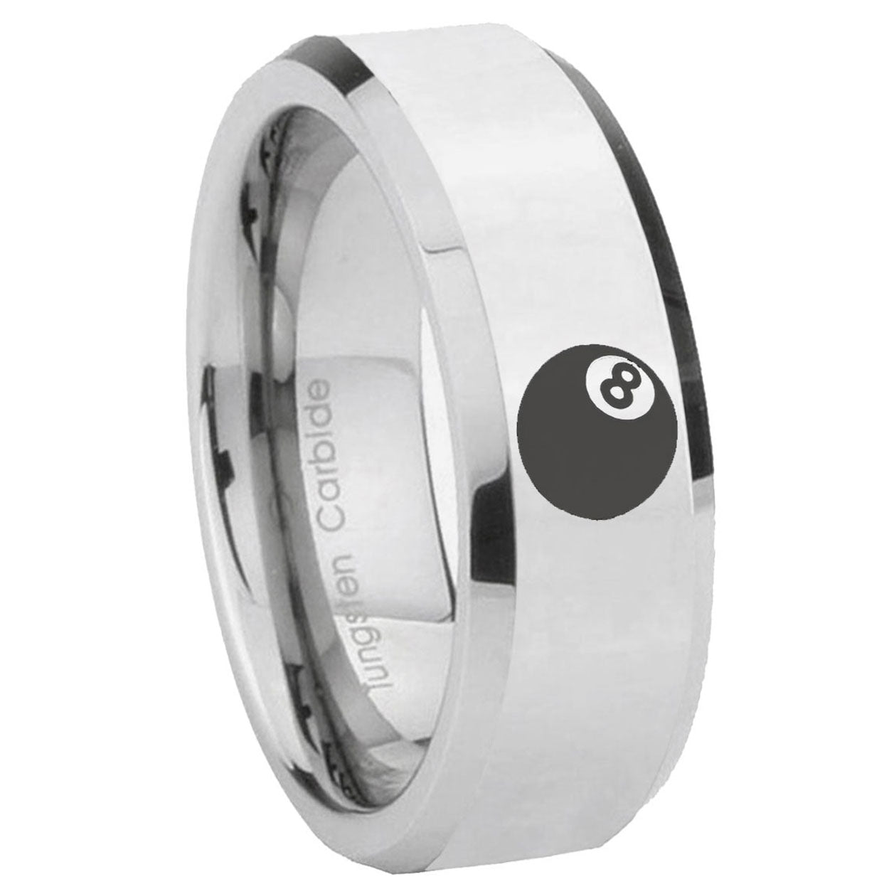 5, 8mm 8 Ball Beveled Edges Silver Tungsten Carbide Promise Ring