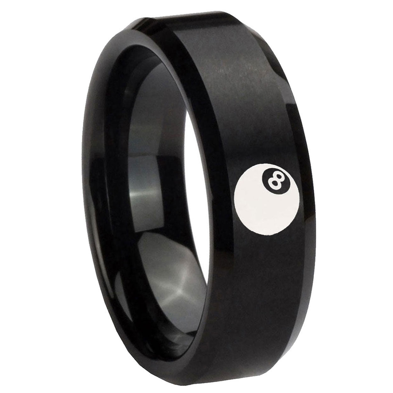 Intruding 5, 8mm 8 Ball Beveled Edges Brush Black Tungsten Carbide Men's Wedding Ring . Offer in both 5mm and 8mm band width brushed black plated finished from size 4 to 14