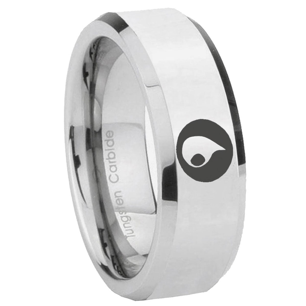 Intruding 5, 8mm Magic Gathering Beveled Edges Silver Tungsten Carbide Wedding Band Ring . Offer in both 5mm and 8mm band width polished silver finished from size 4 to 14