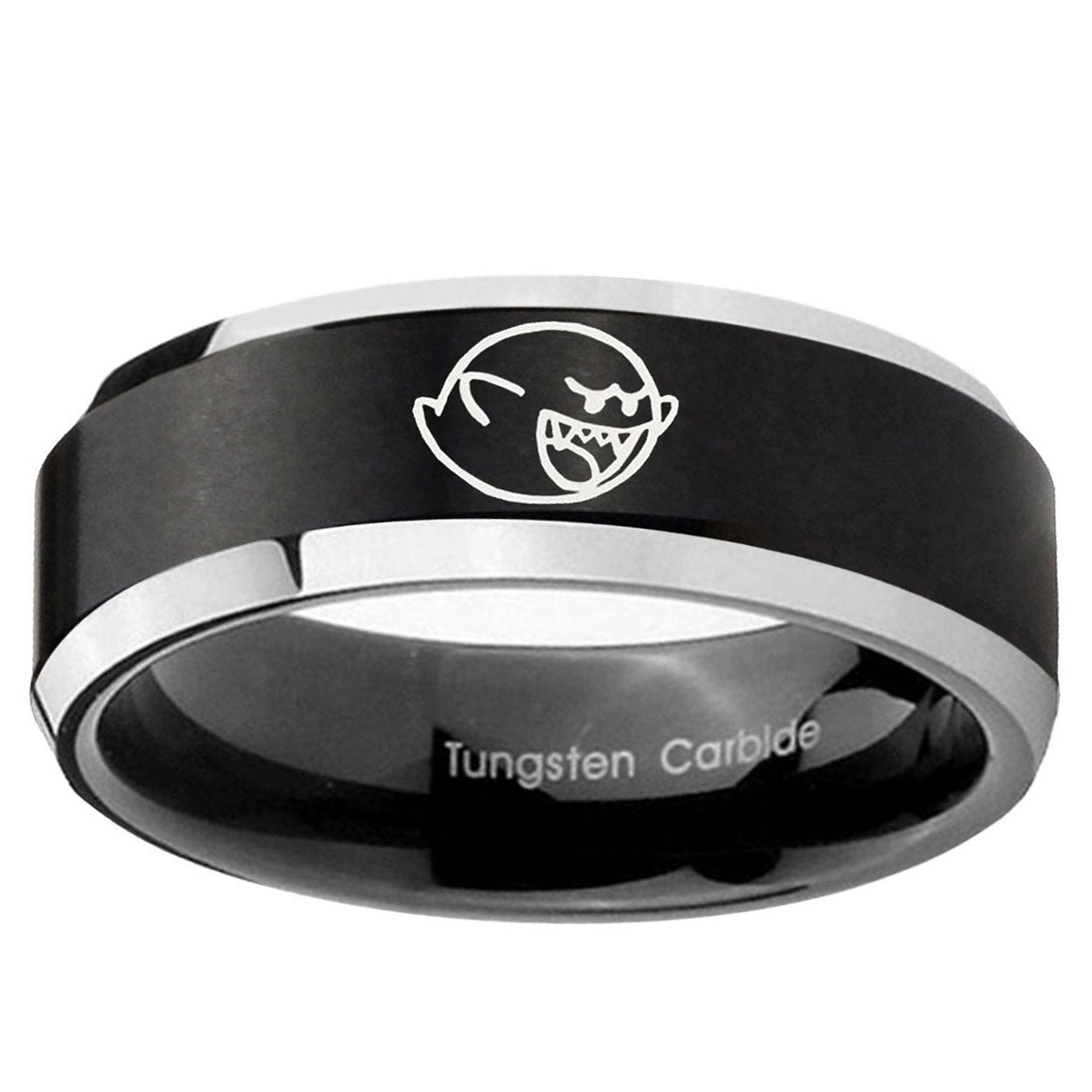 5, 8mm Mario Boo Ghost Beveled Edges Brush Black 2 Tone Tungsten Mens Promise Ring