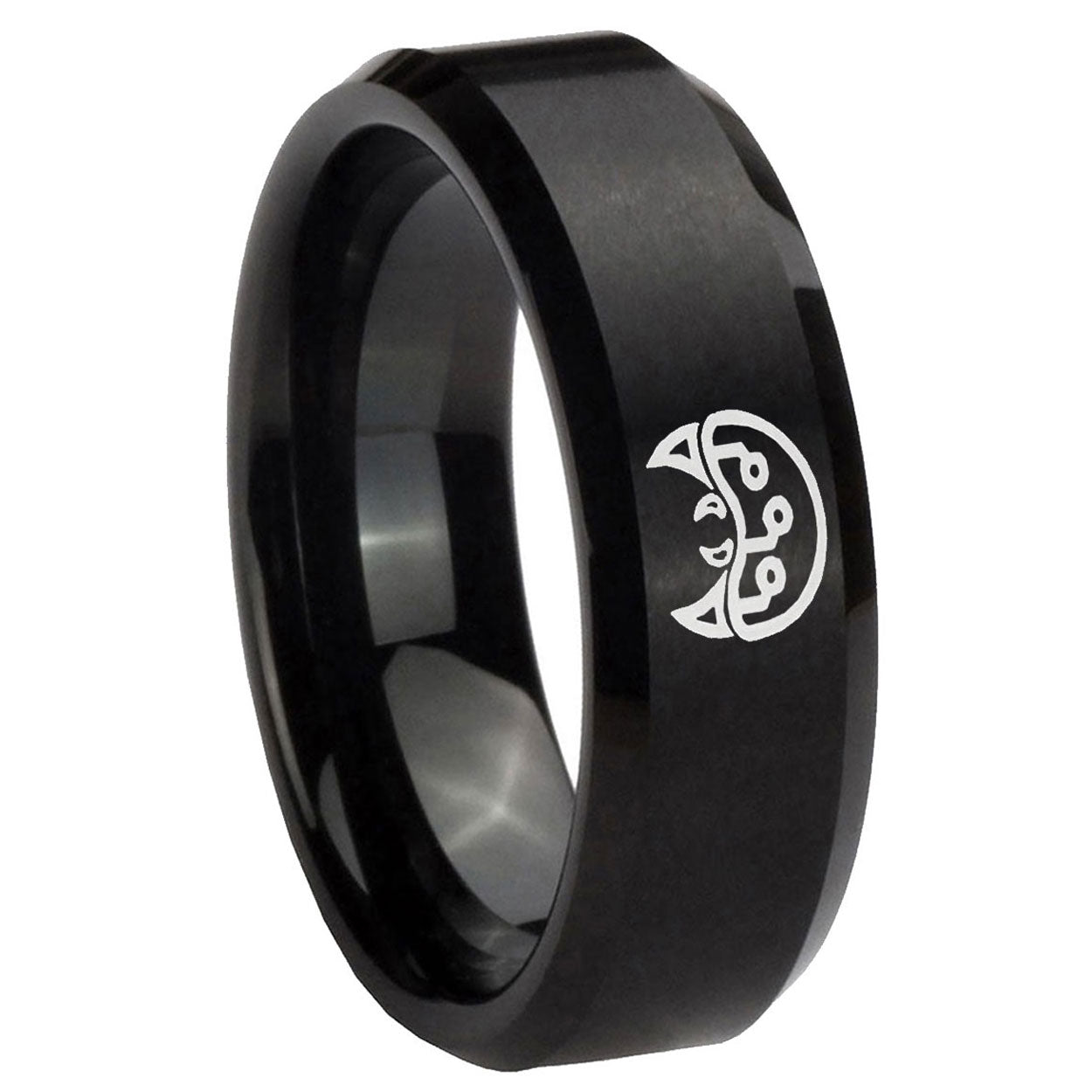 Intruding 5, 8mm Metroid Beveled Edges Brush Black Tungsten Carbide Engraved Ring . Offer in both 5mm and 8mm band width brushed black plated finished from size 4 to 14