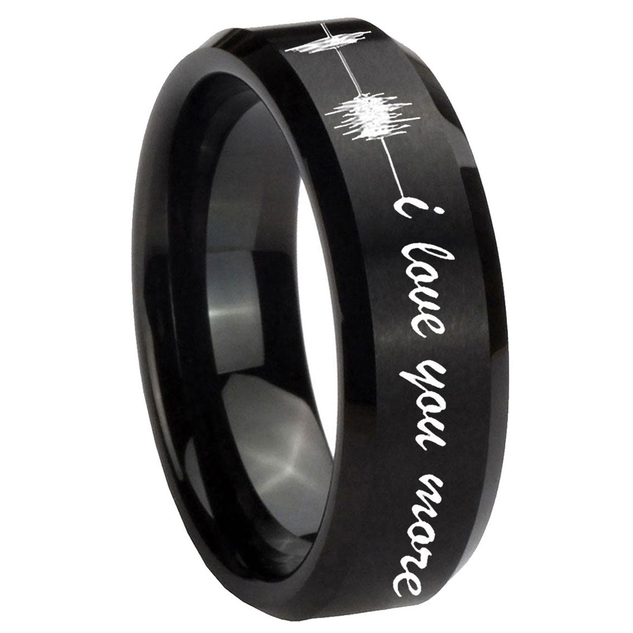 10mm Sound Wave, I love you more Beveled Brush Black Tungsten Men's Bands Ring