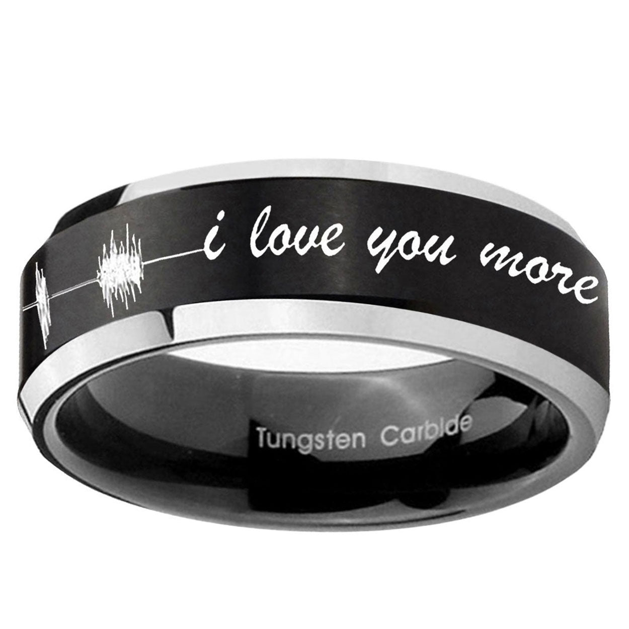 10mm Sound Wave I love you more Beveled Brush Black 2 Tone Tungsten Promise Ring