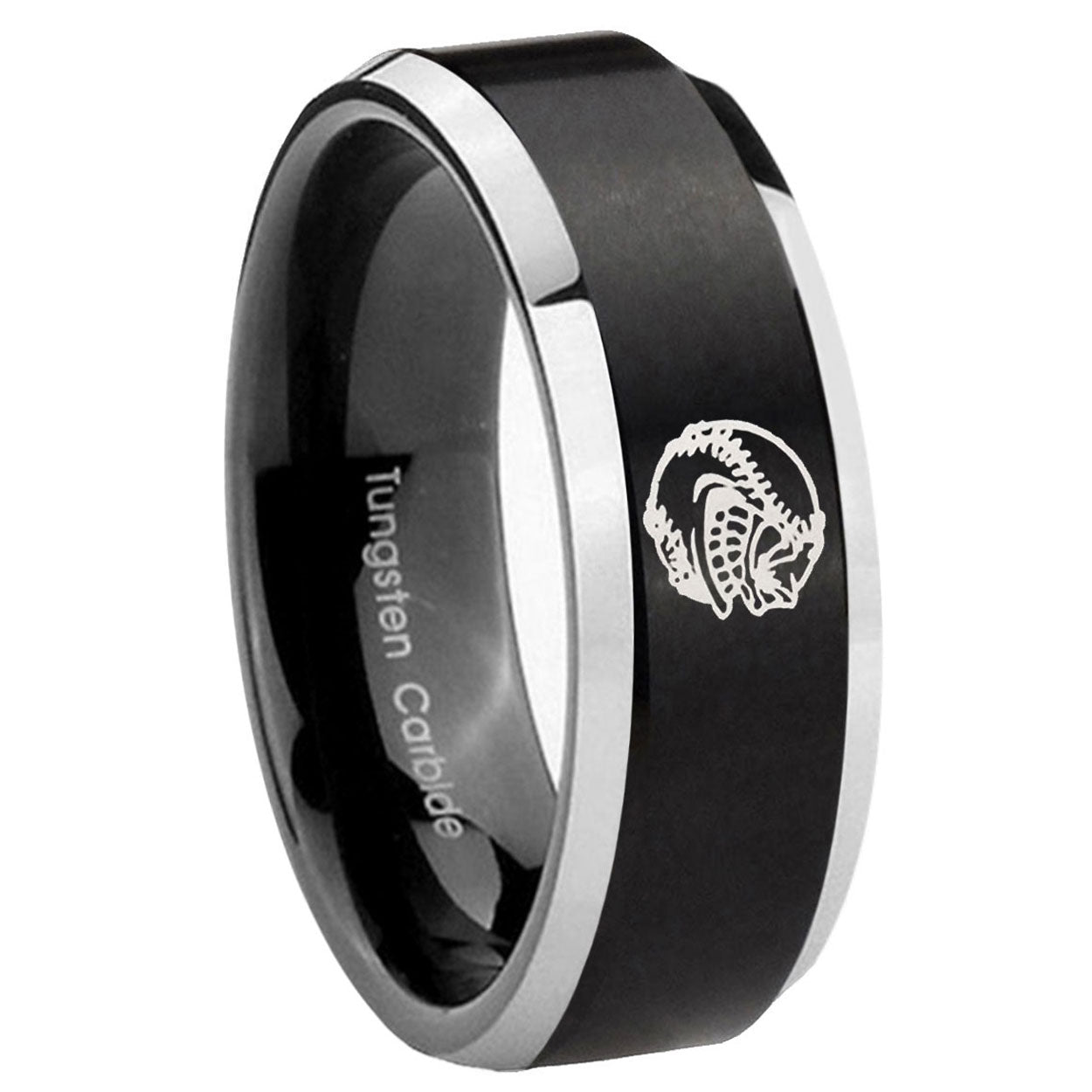 Intruding 5, 8mm Angry Baseball Beveled Edges Brush Black 2 Tone Tungsten Engagement Ring . Offer in both 5mm and 8mm band width brushed black plated 2 tone finished from size 4 to 14