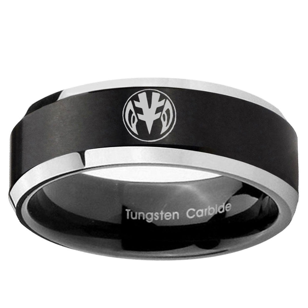 Intruding 5, 8mm Love Power Rangers Beveled Brush Black 2 Tone Tungsten Men's Band Ring . Offer in both 5mm and 8mm band width brushed black plated 2 tone finished from size 4 to 14