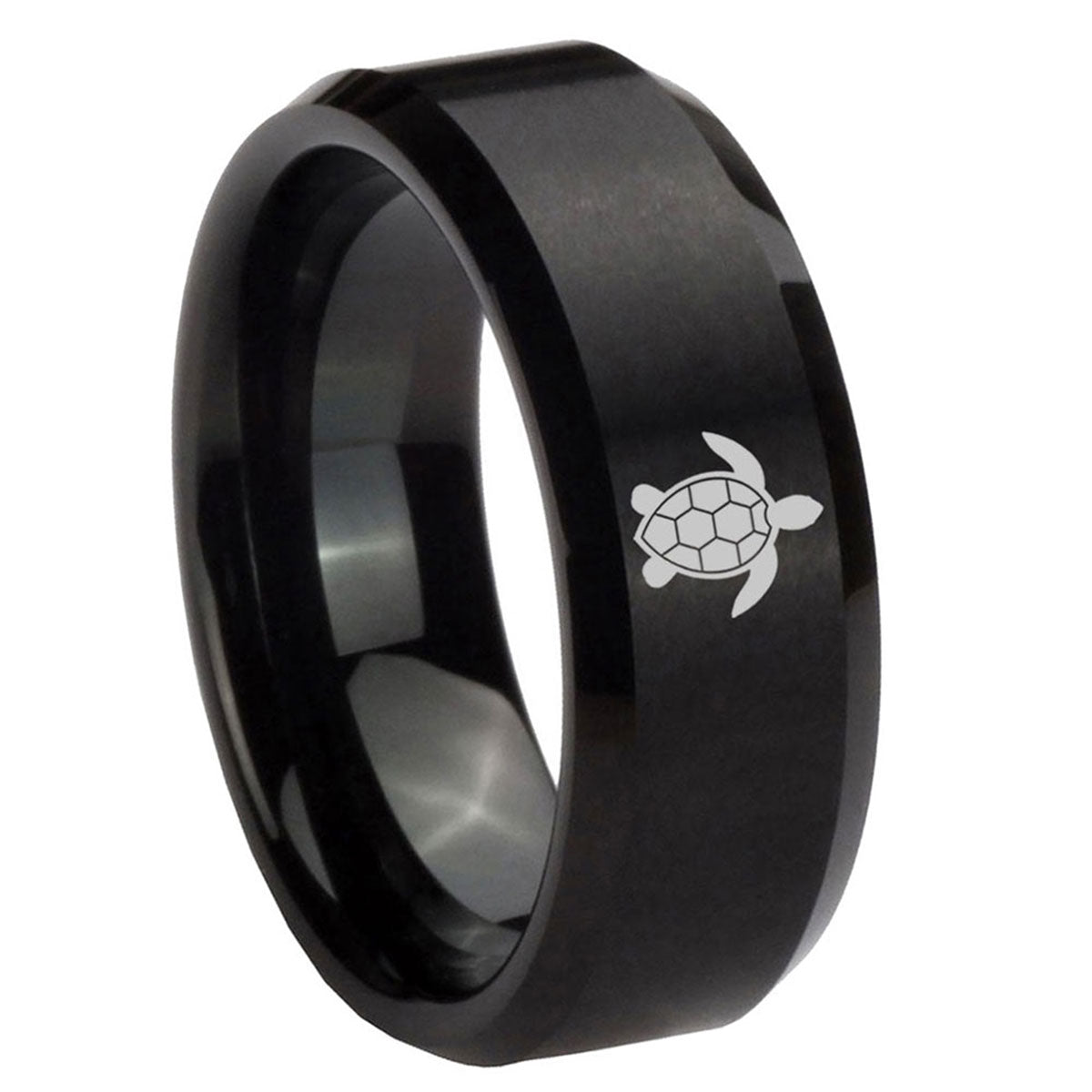 Introuding 5, 8mm Sea Turtle Beveled Edge Brushed Black Durable Wedding Bands For Her . Offer in both 5mm and 8mm band width brushed black plated finished from size 4 to 14