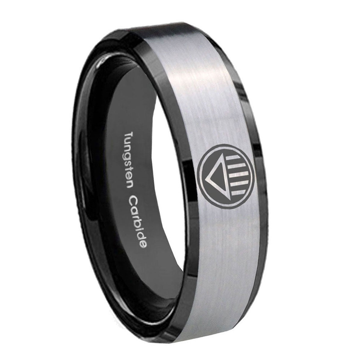 5, 8mm Lantern Corps Beveled Edge Black Silver Custom Engraved Ring
