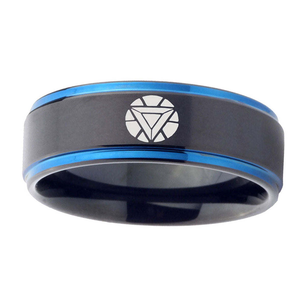 5, 8mm Iron Man Art Reactor Step Edge Black Blue Steel Rings