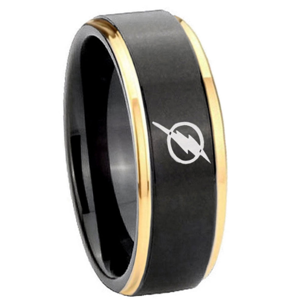 6, 8mm Flash Step Edge Black Gold Ring Silver Wedding