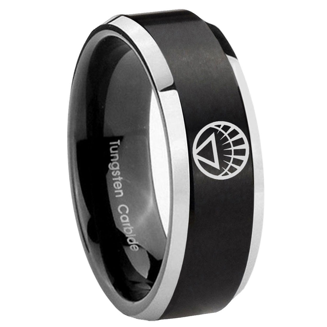 Intruding 5, 8mm White Lantern Beveled Edge Two Tone Black Men Ring Tungsten . Offer in both 5mm and 8mm band width black two tone finished from size 4 to 14