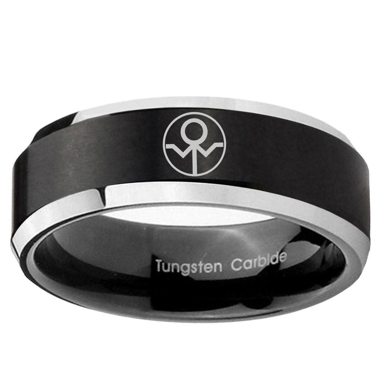 Intruding 5, 8mm Gray Lantern Beveled Edge Two Tone Black Tungsten Men Wedding Bands . Offer in both 5mm and 8mm band width black two tone finished from size 4 to 14