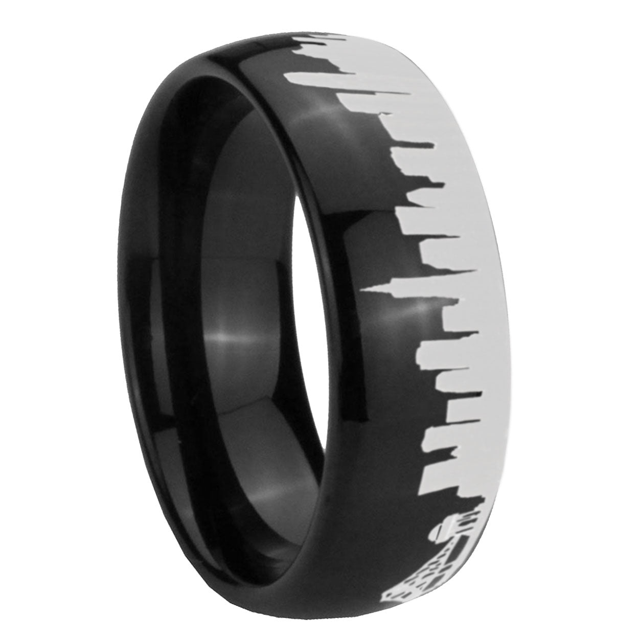 8mm CA San Francisco City Dome Polish Black Tungsten Mens Engraved Wedding Bands