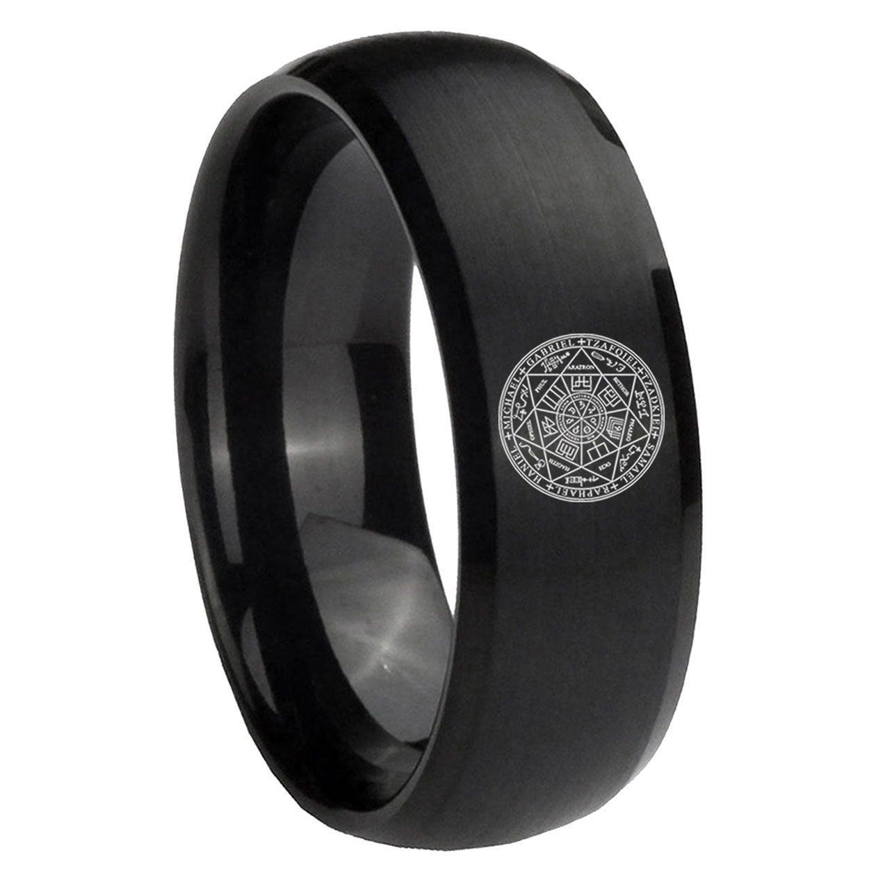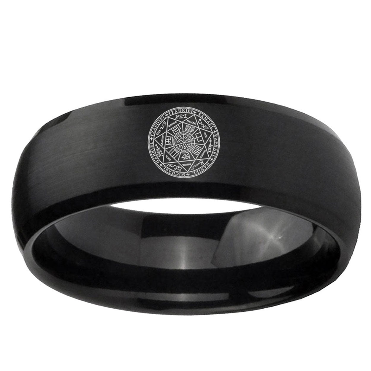 5, 8mm Seal of Seven Archangel Dome Matte Black Men's Tungsten Rings