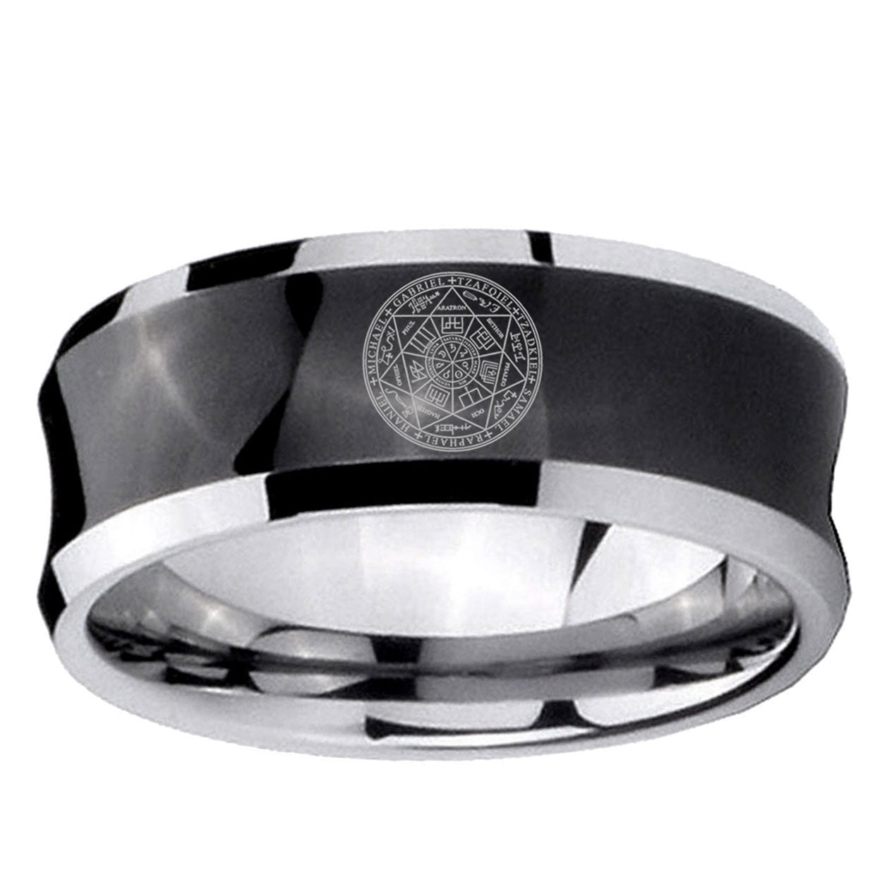 5, 8mm Seal of Seven Archangel Concave Black Mens Wide Band Rings