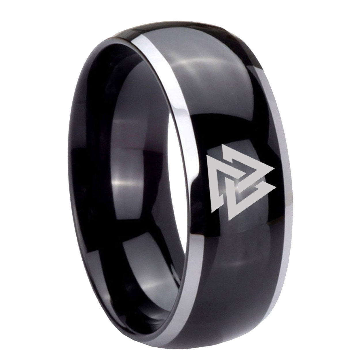 Intruding 5, 8mm Viking Symbol Dome Two Tone Black Tungsten Carbide Ring . Offer in both 5mm and 8mm band width polished black plated two tone finished from size 4 to 14