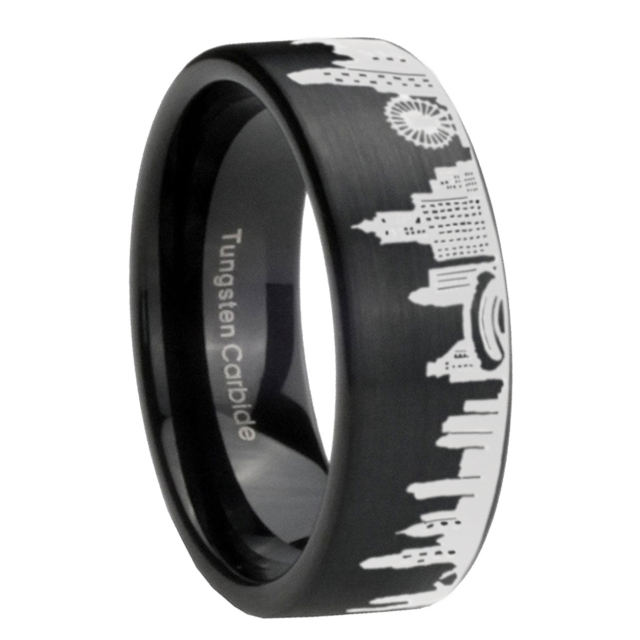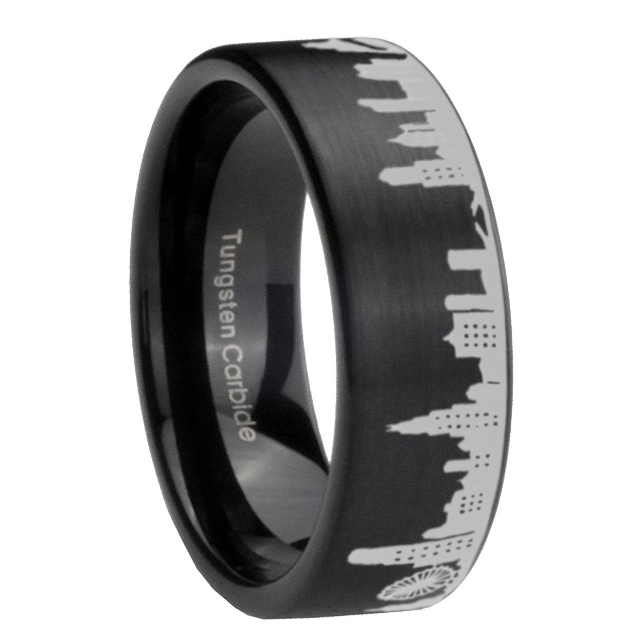 8mm Chicago City Brushed Black Pipe Cut Tungsten Ring For Him