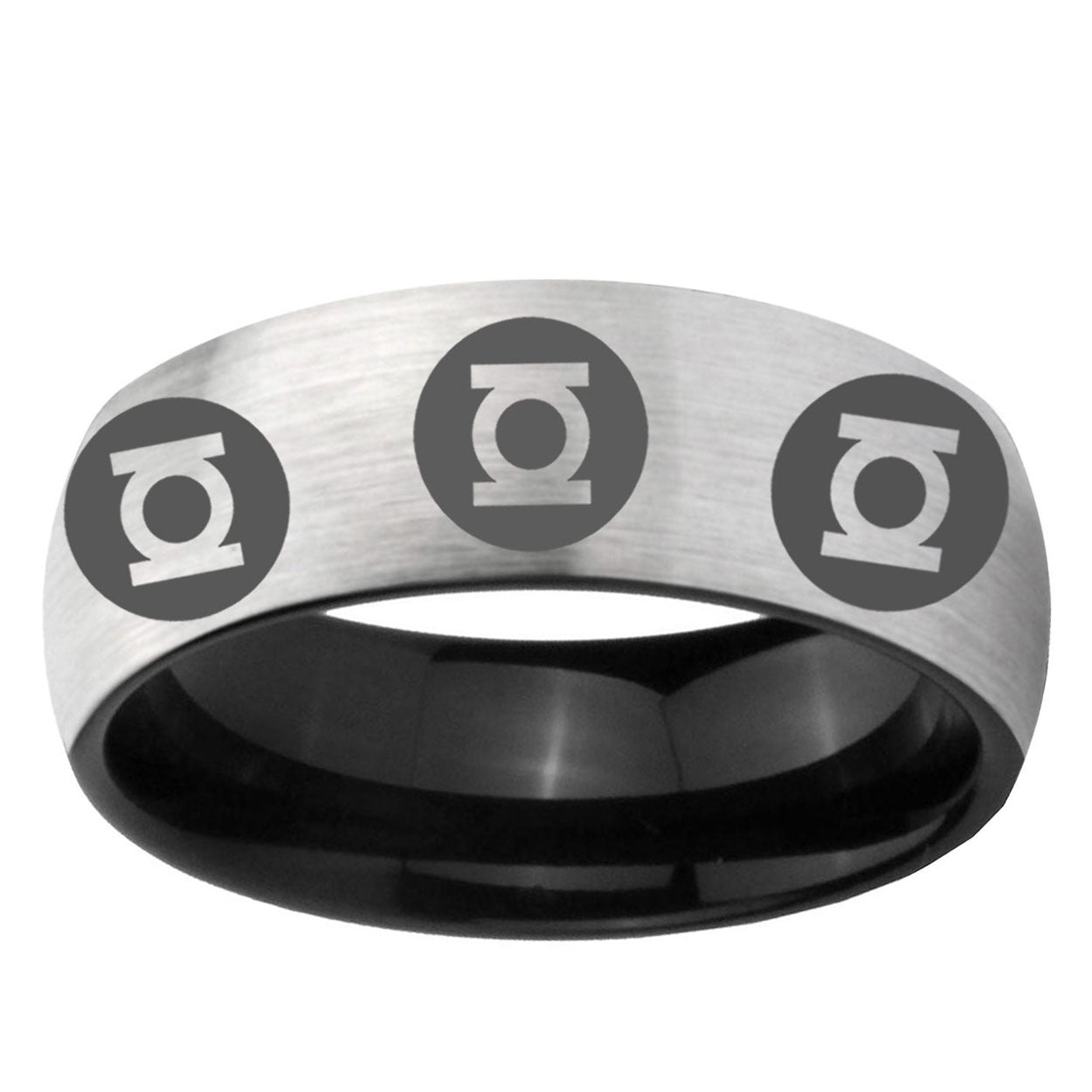 Intruding 6, 8mm Multiple Green Lantern Dome Gray And Black Tungsten Comfort Fit Wedding Bands . Offer in both 6mm and 8mm band width Gray And Black plated finished from size 5 to 14