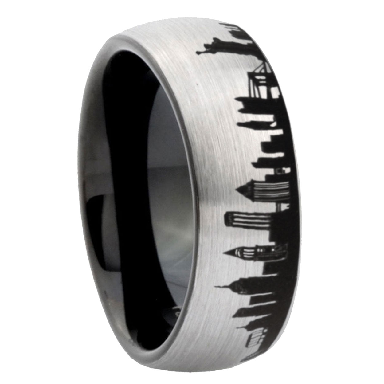 Intruding 8mm NY New York City Dome Brushed Gray Tungsten Black Inside Promised Ring . Offer in 8mm band width gray and black plated finished from size 7 to 14